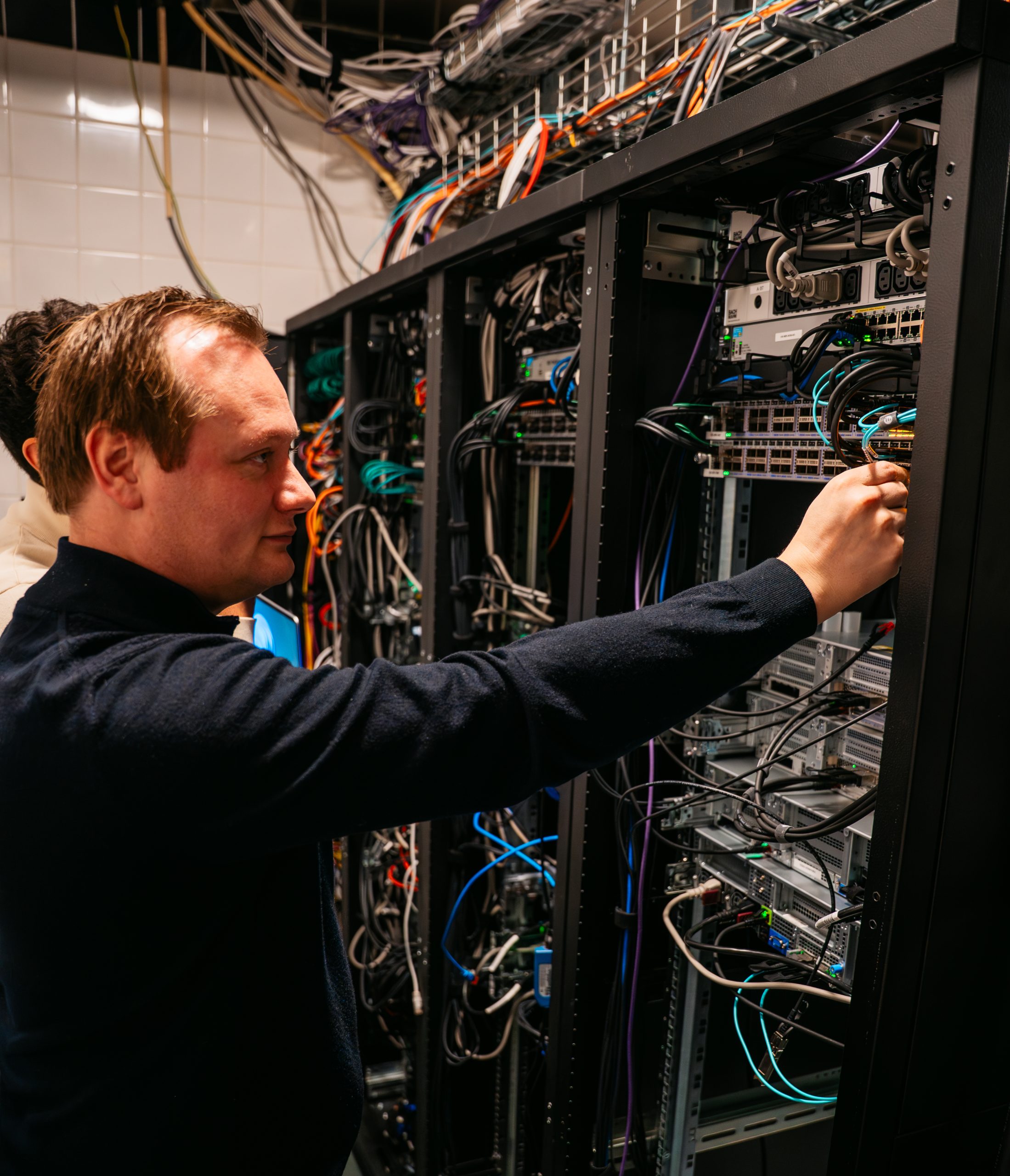 Wij beschikken over twee volledig geo-redundante datacenters in Purmerend, verbonden via een dark fiber-ring. Daarnaast hebben we directe koppelingen met Nikhef en NL-IX, een van de grootste internetknooppunten van Europa.